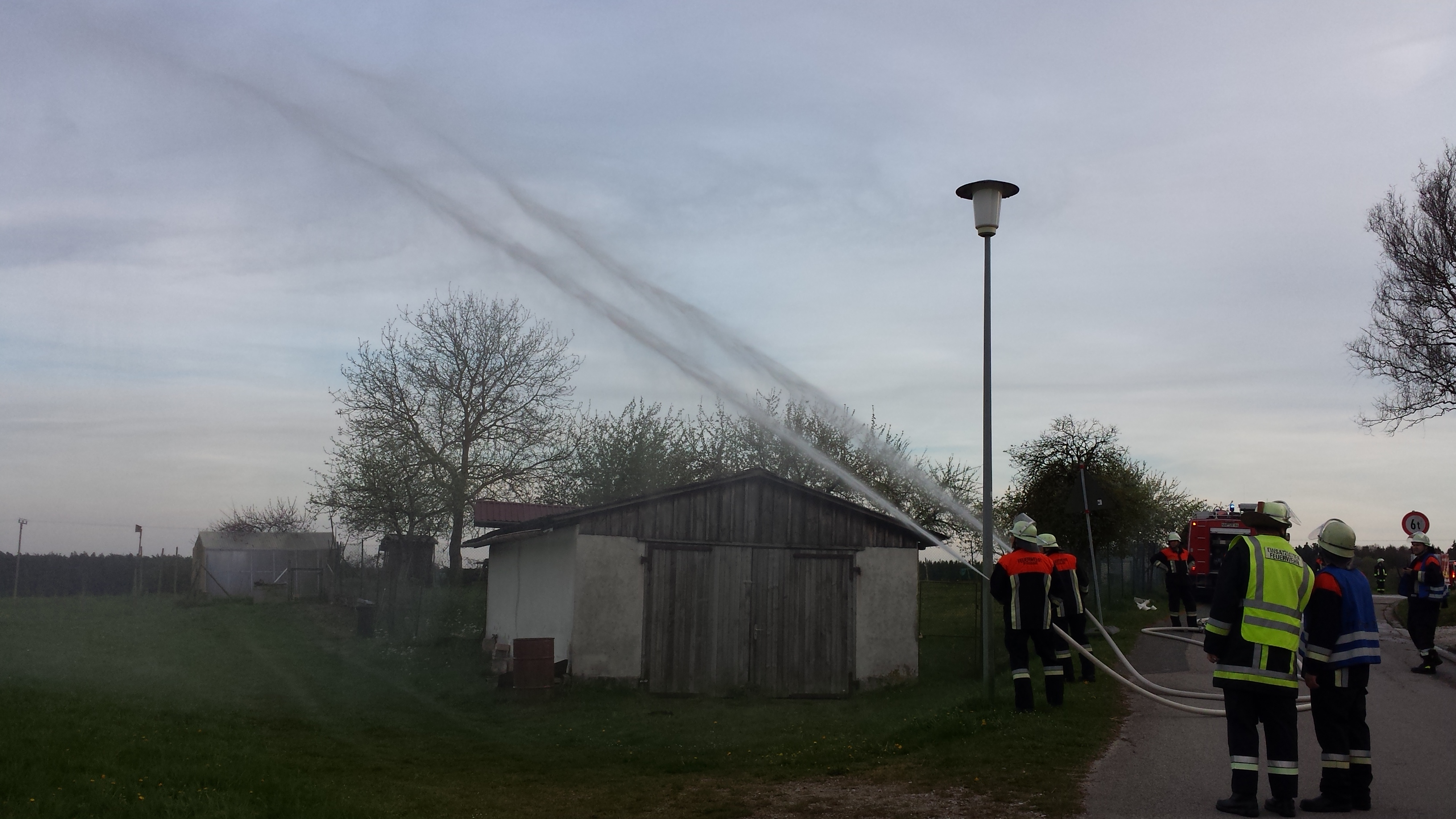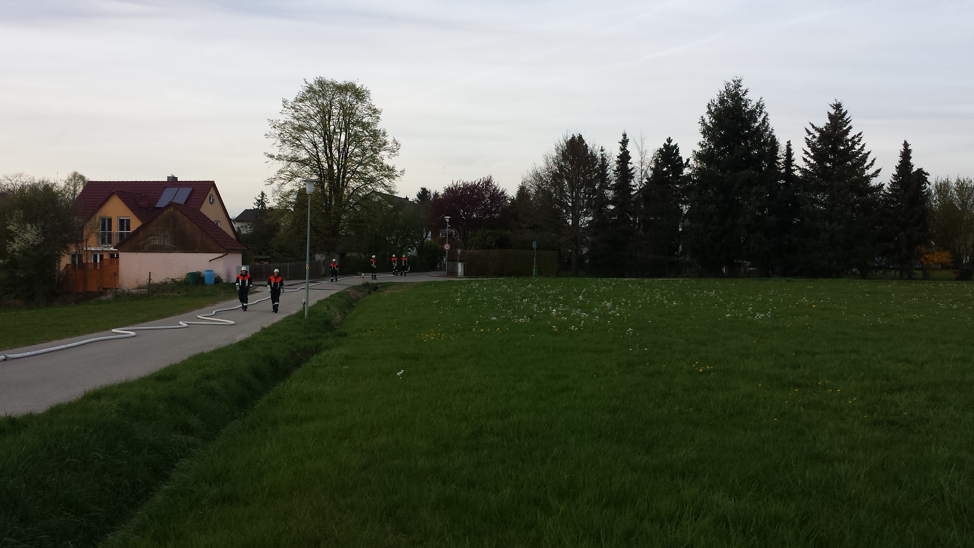 Die beiden Gruppen der Feuerwehr Pyrbaum übten am Sonntag 23. und Montag 24.04.2017 (mit Jugendfeuerwehr) einen Löschaufbau mit verlegen einer langen Schlauchleitung zum Aufbau einer zweiten Wasserversorgung.