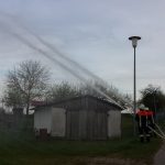 Nach dem Löschaufbau wurde noch die Einsatzübung besprochen und noch diverse Ausrüstungsgegenstände wie die Wärmebildkamera, das Schlauchpaket und das Hohlstrahlrohr angesprochen.