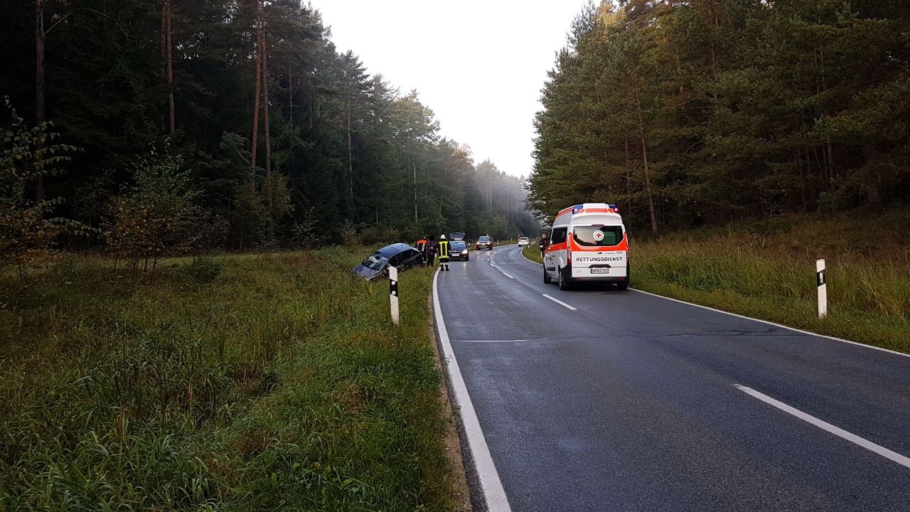 Eine Autofahrerin kam mit ihrem PKW von der Straße ab und ist im Graben zum stehen gekommen. Sie wurde verletzt aber nicht in ihrem Fahrzeug eingeklemmt, dennoch lösten die Airbags aus.