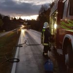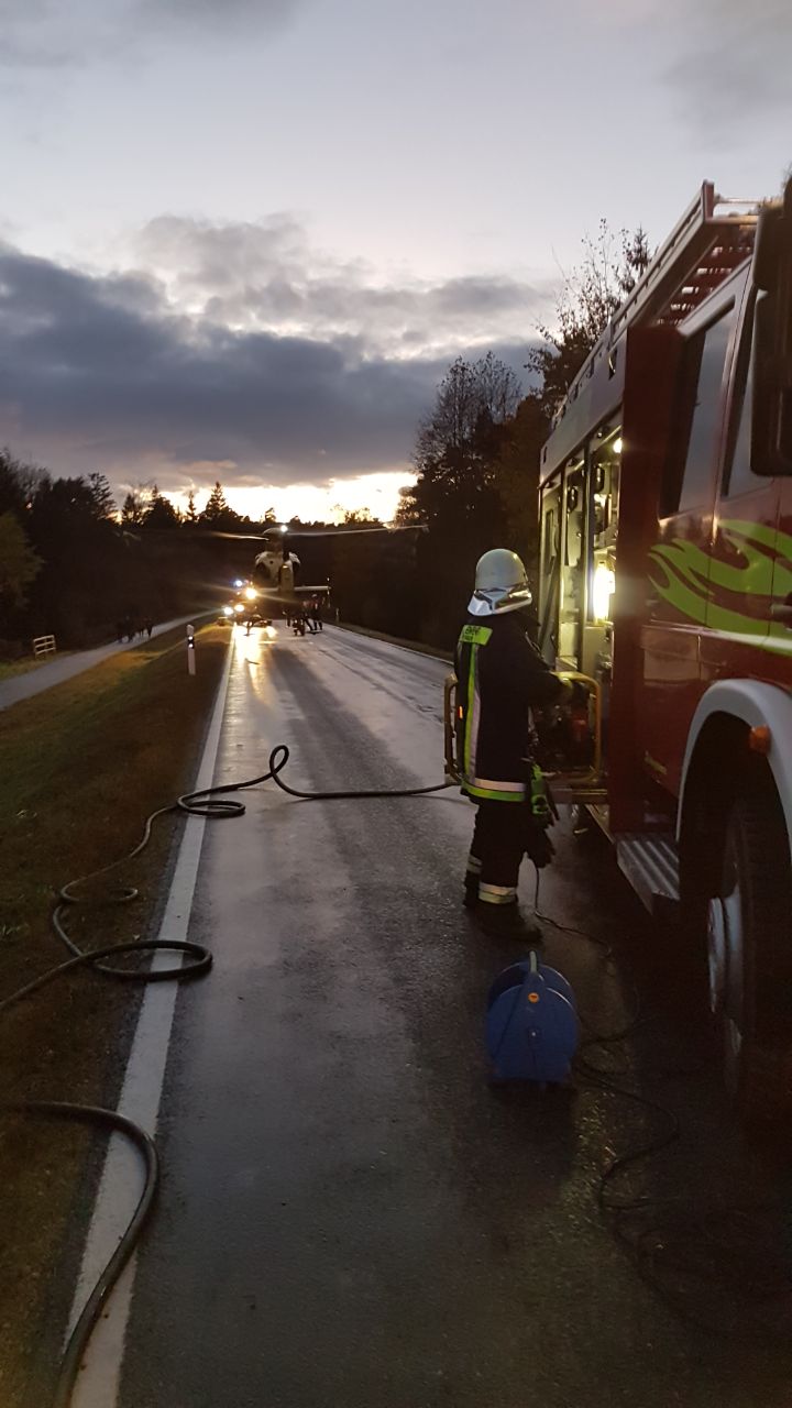 Außerdem wurde der Rettungsdienst bei der Erstversorgung der Verletzten unterstützt und die Landeplätze für die Hubschrauber ausgeleuchtet. Nachdem die beiden Fahrzeuge auf den Abschleppern verladen waren, wurde die Straße von Trümmerteilen befreit und ausgelaufene Betriebsstoffe mit Ölbindemittel aufgenommen.