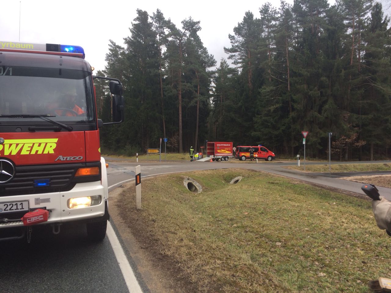 Ein Anrufer meldete das sich vor dem Feuerwehrhaus Pyrbaum eine Ölspur befindet. Bei der Erkundung wurde festgestellt, das sich die Spur durch das Ortsgebiet Pyrbaum bis an die Kreuzung nach Dennenlohe zieht. Dadurch wurde entschieden eine Alarmierung per Sirene auszulösen um die erforderliche Mannschaftsstärke zu erreichen.