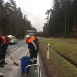 Die Verschmutzung wurde mit Ölbindemittel abgekehrt um die Gefahr für die Verkehrsteilnehmer zu beseitigen.
