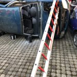Danach galt es das Fahrzeug gegen umkippen zu sichern. Dies wurde mit Unterbaukeilen, Steckleiterteilen und Spanngurten durchgeführt. Währenddessen wurde die Rettungsplattform aufgebaut um an der oberen Seite besser arbeiten zu können. Zeitgleich wurden alle Scheiben mit Folie abgeklebt um die Splitterbildung auf ein Minimum zu reduzieren. Die Scheiben wurden alle entfernt um eine erste Zugangsöffnung zum „Patienten“ zu schaffen.