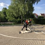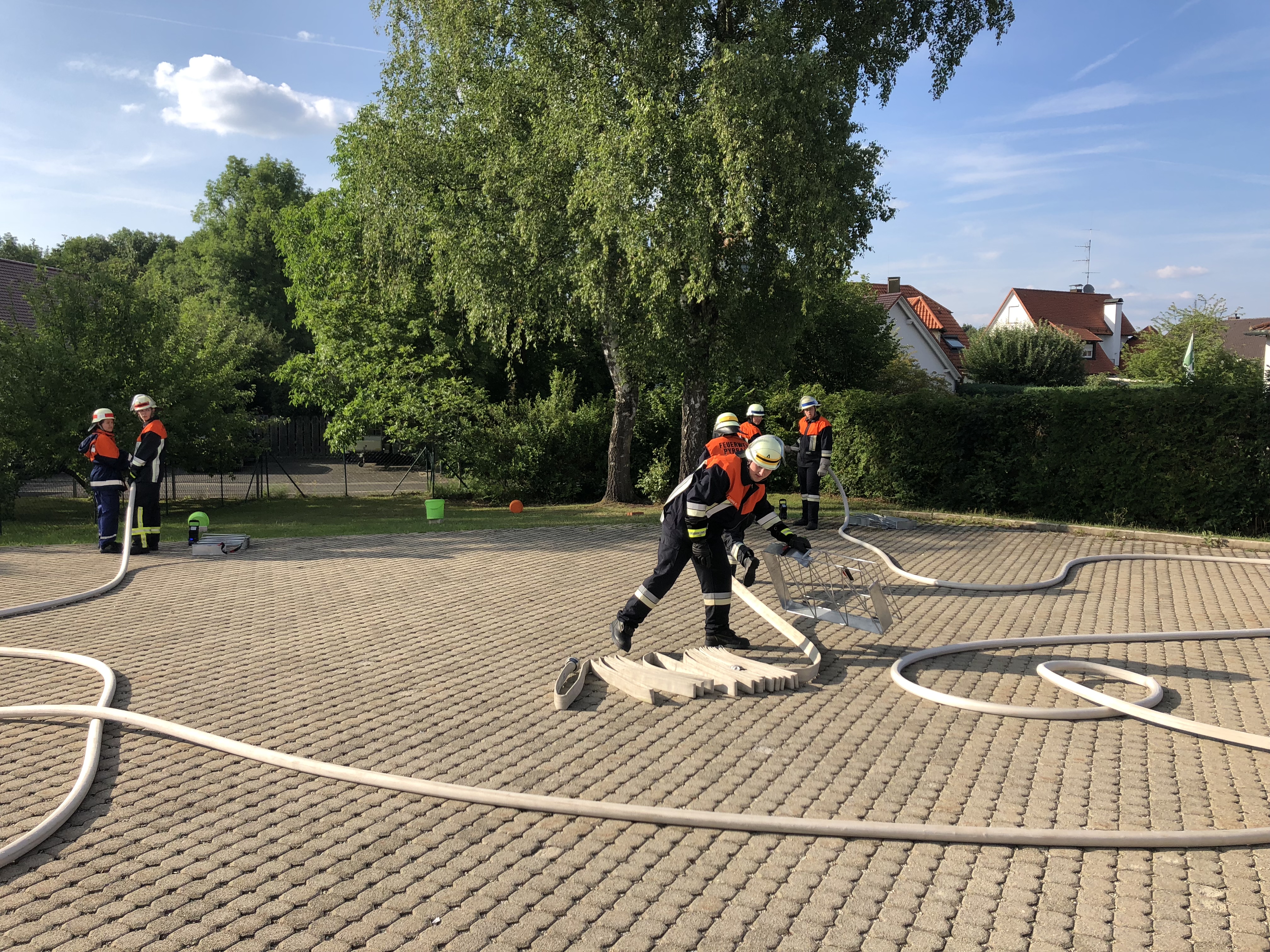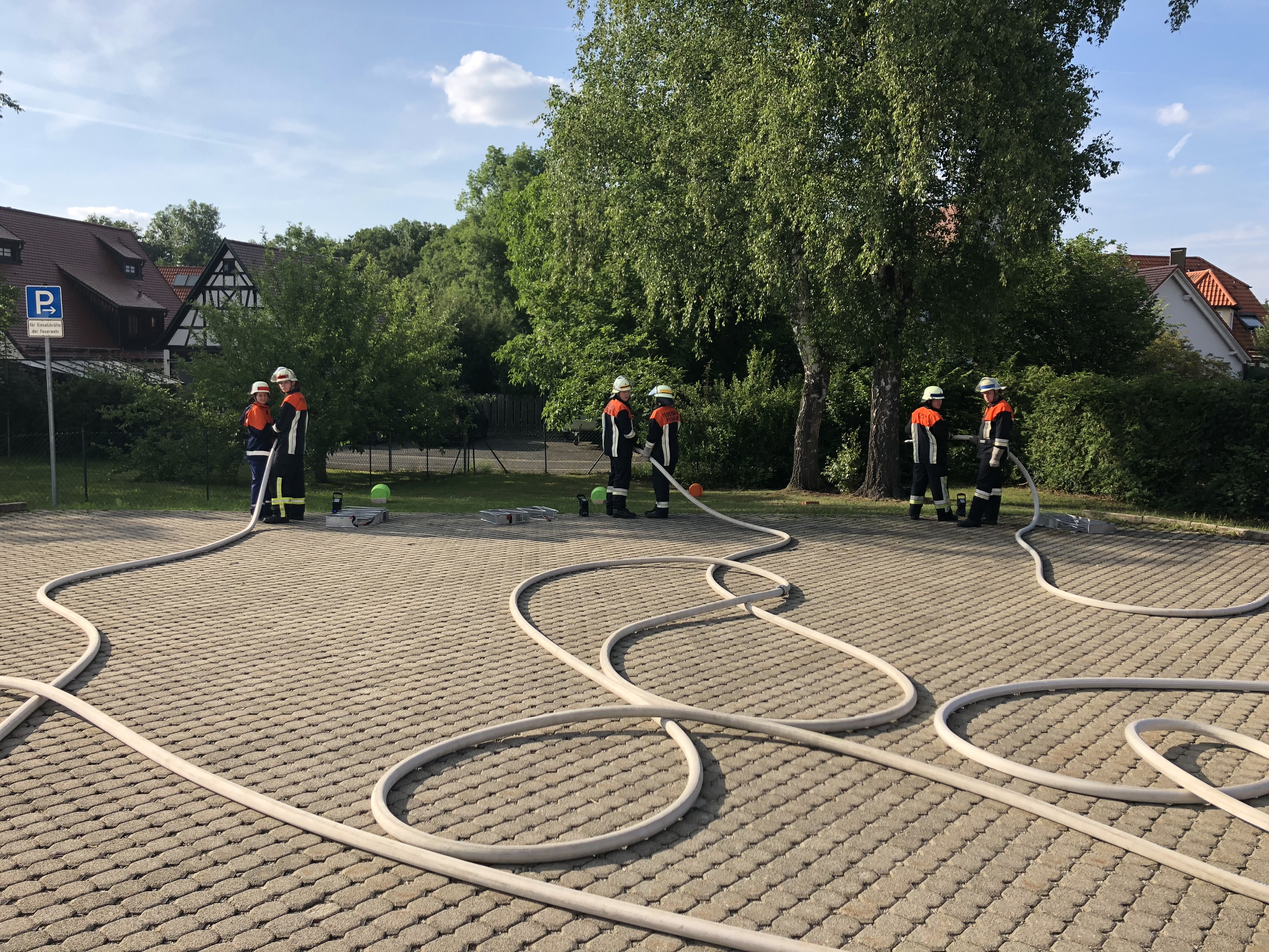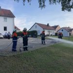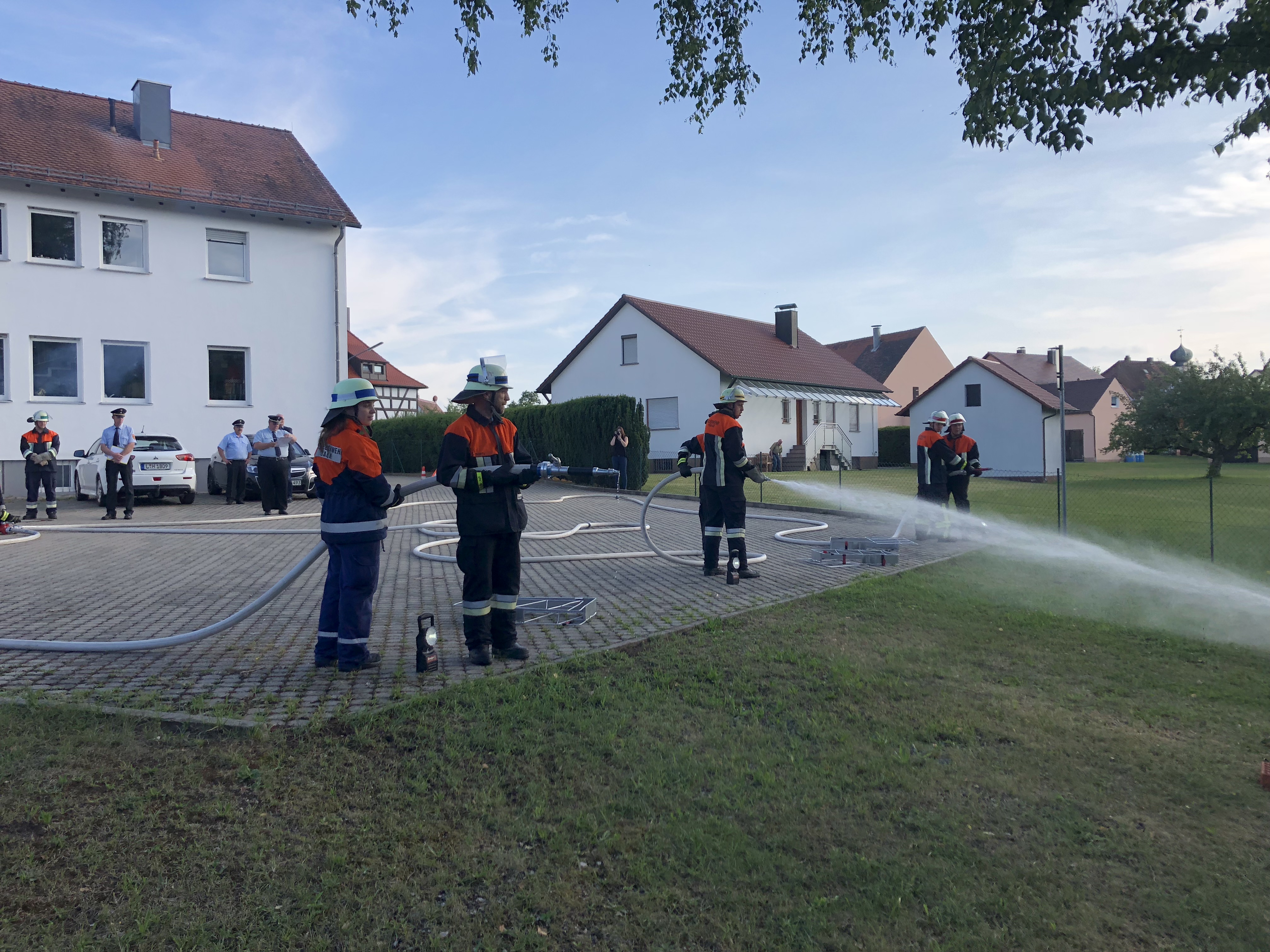 Heute waren zwei Gruppen der Freiwilligen Feuerwehr Pyrbaum bei ihrem Leistungsabzeichen „Gruppe im Löscheinsatz“ sehr erfolgreich. Sie zeigten dabei einen sauberen Löschaufbau. Dabei galt es in einer vorgegebenen Zeit eine Wasserversorgung von einem Hydranten und eine Verkehrsabsicherung herzustellen, sowie drei Strahlrohre vorzunehmen. Auch das Saugschlauchkuppeln und die Knotenkunde waren ein wichtiger Bestandteil der Abnahme. Je nach Stufe der Feuerwehrkameradinnen und Feuerwehrkameraden, wurden auch noch die jeweiligen Zusatzaufgaben erfolgreich gemeistert.