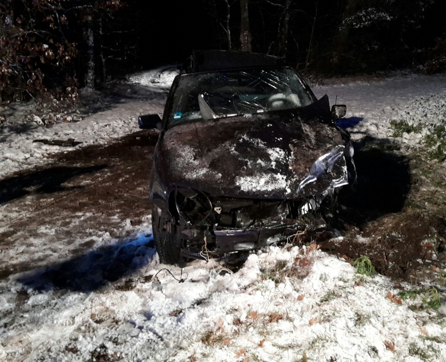 Auf der Verbindungsstraße NM17 Sperberslohe – Pyrbaum ereignete sich kurz nach der Kläranlage Oberhembach ein Verkehrsunfall. Ein Fahrzeug kam alleinbeteiligt von der Fahrbahn ab, prallte gegen einen Wasserdurchlass, überschlug sich und kam auf den Rädern, auf einen neben der Fahrbahn gelegenen Waldweg, zum stehen. Durch die Verformung des Fahrzeugs war es nicht möglich die Türe zu öffnen. Die Feuerwehr Pyrbaum öffnete mit dem Rettungssatz aus dem LF 16 die Fahrertüre. Somit konnte die verletzte Person schonend und achsengerecht aus seinem Fahrzeug, in enger Absprache mit dem Rettungsdienst und Notarzt, befreit werden. Zudem wurde die Einsatzstelle mit Flutlichtstrahlen ausgeleuchtet und die Straße während der Rettungsmaßnahmen durch die Feuerwehr Oberhembach komplett für den Verkehr gesperrt. Durch die schnelle Fahrzeugöffnung wurde die mit angeforderte Feuerwehr Wendelstein (für den 2. Rettungssatz) nicht mehr benötigt und konnte die Einsatzstelle nach kurzer Zeit wieder verlassen.
