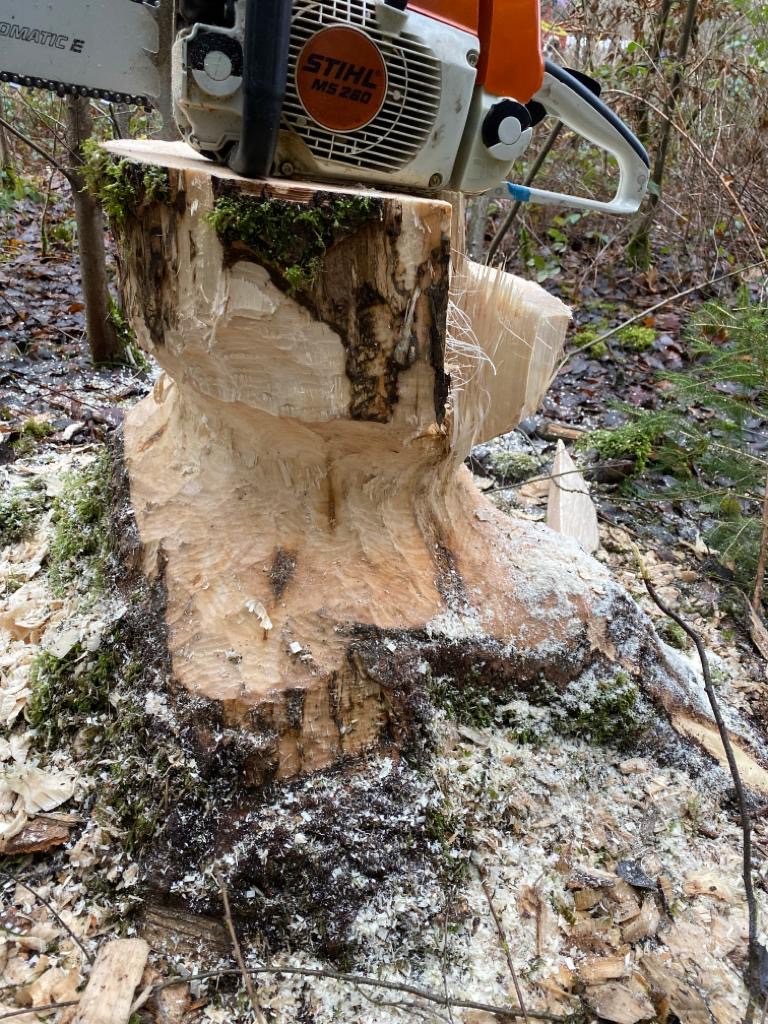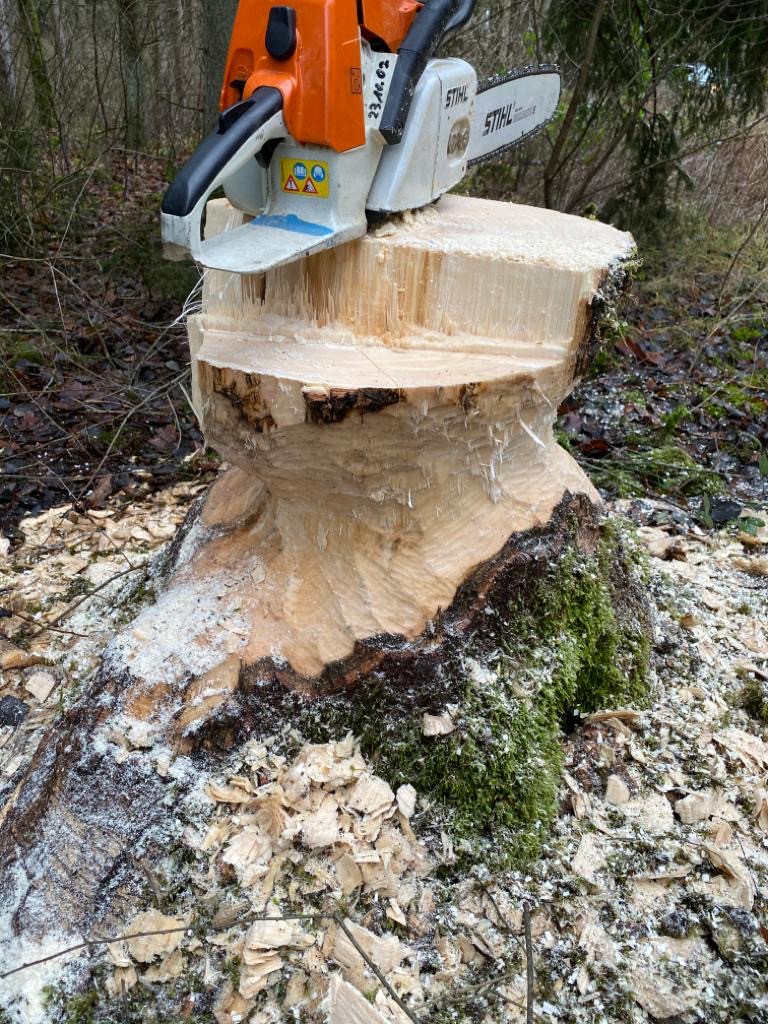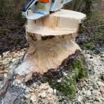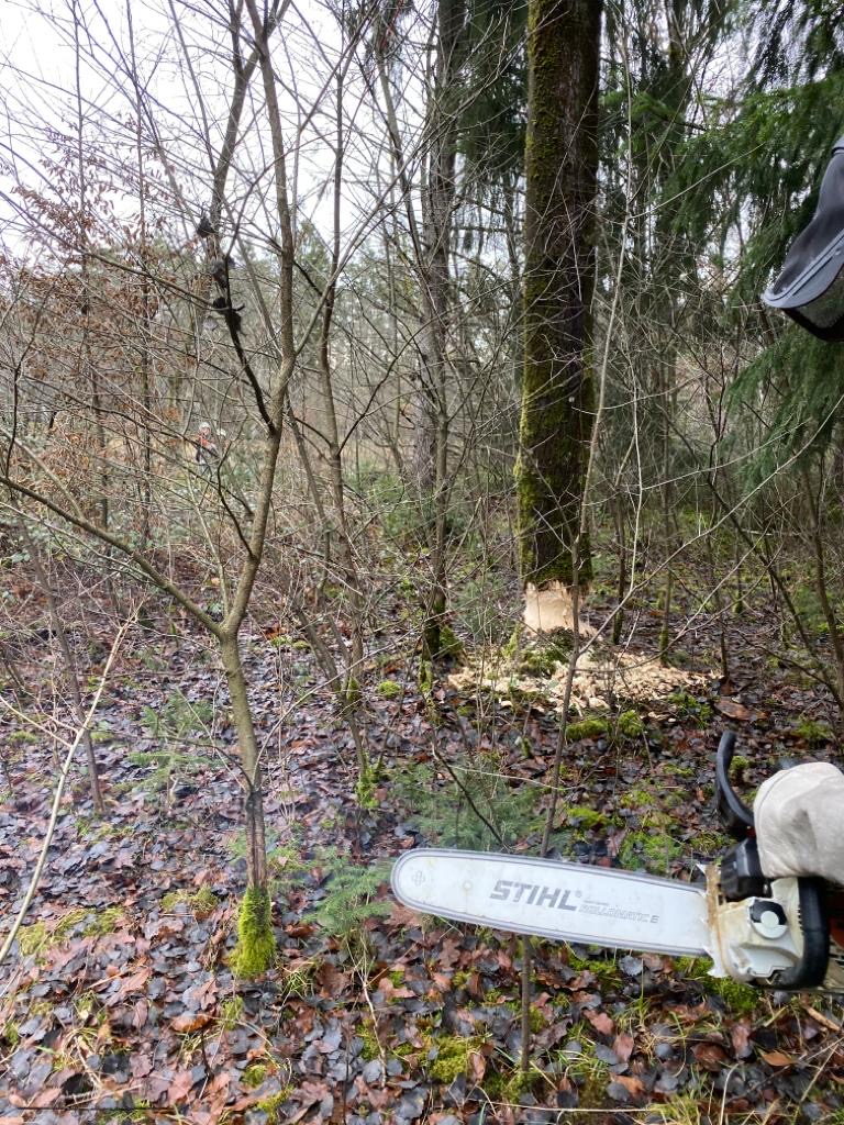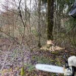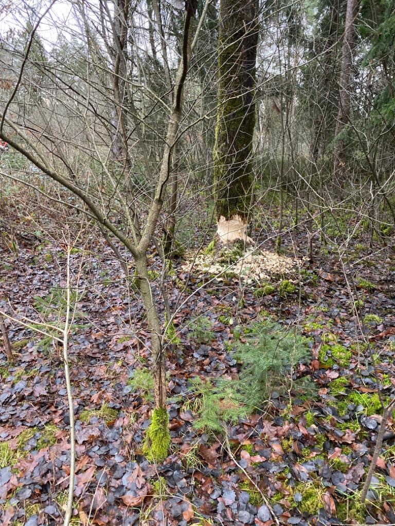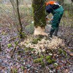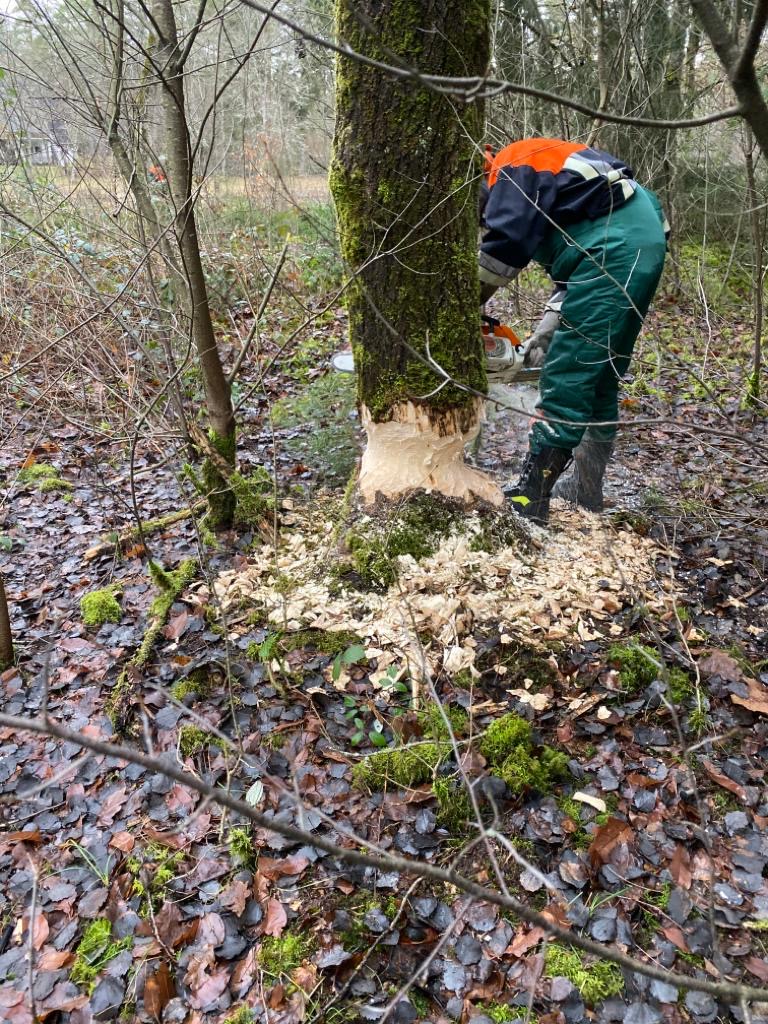Einem Autofahrer fiel am Waldrand bei der Straßmühle ein ca. 30 Meter hoher Baum auf, der von einem Bieber angenagt und bearbeitet wurde. Dieser hätte jederzeit auf die Fahrbahn stürzen können. Durch uns wurde der Baum gefällt. Während dieser Maßnahme musste die Fahrbahn, aus Sicherheitsgründen, kurzzeitig für den Verkehr komplett gesperrt werden.