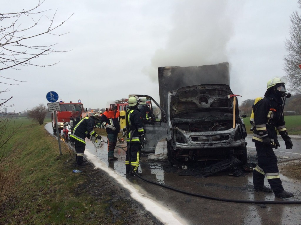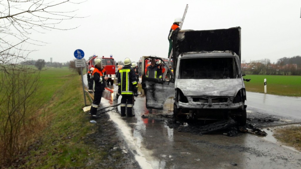 Auf der Verbindungsstraße NM17 Pyrbaum Richtung Rengersricht geriet ein Kleintransporter, vermutlich aufgrund eines technischen Defekts, in Brand. Die Feuerwehr Pyrbaum bekämpfte den Brand unter schwerem Atemschutz mittels Schnellangriffseinrichtung. Das Fahrzeug brannte im vorderen Bereich vollständig aus. Nach gut 2 1/4 Stunden war der Einsatz beendet und die Einsatzbereitschaft wieder hergestellt.
