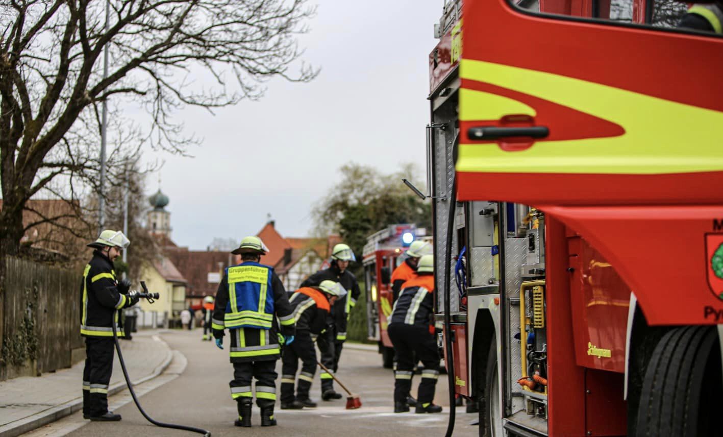 Die Feuerwehr Pyrbaum wurde am 23.3.2023 um 17:23 Uhr zu einem Verkehrsunfall mit zwei PKW in die Neumarkter Straße in Pyrbaum mittels Sirene alarmiert. Ein PKW fuhr auf einen parkendes Fahrzeug auf. Unsere Maßnahmen waren die Erstversorgung der verletzten Person, die Sicherstellung des Brandschutzes sowie das Binden der auslaufenden Betriebsstoffe. Die Kreisstraße musste für die gesamte Einsatzdauer voll gesperrt werden.