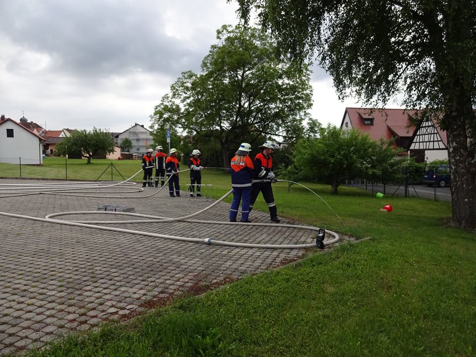 Heute haben 14 aktive Feuerwehrkameradinnen und -kameraden die Leistungsprüfung „Gruppe im Löscheinsatz“ abgelegt. Die beiden Kommandanten Heinz Müller und Alexander Eckstein haben mit Unterstützung der Gruppenführer Werner Keil und Jörg Tatschke, sowie dem KBM Daniel Kaldonek, die Gruppe auf den heutigen Tag vorbereitet. KBR Anton Bögl fasste das Ergebnis mit den Worten „ein schöner und sauberer Aufbau“ zusammen.