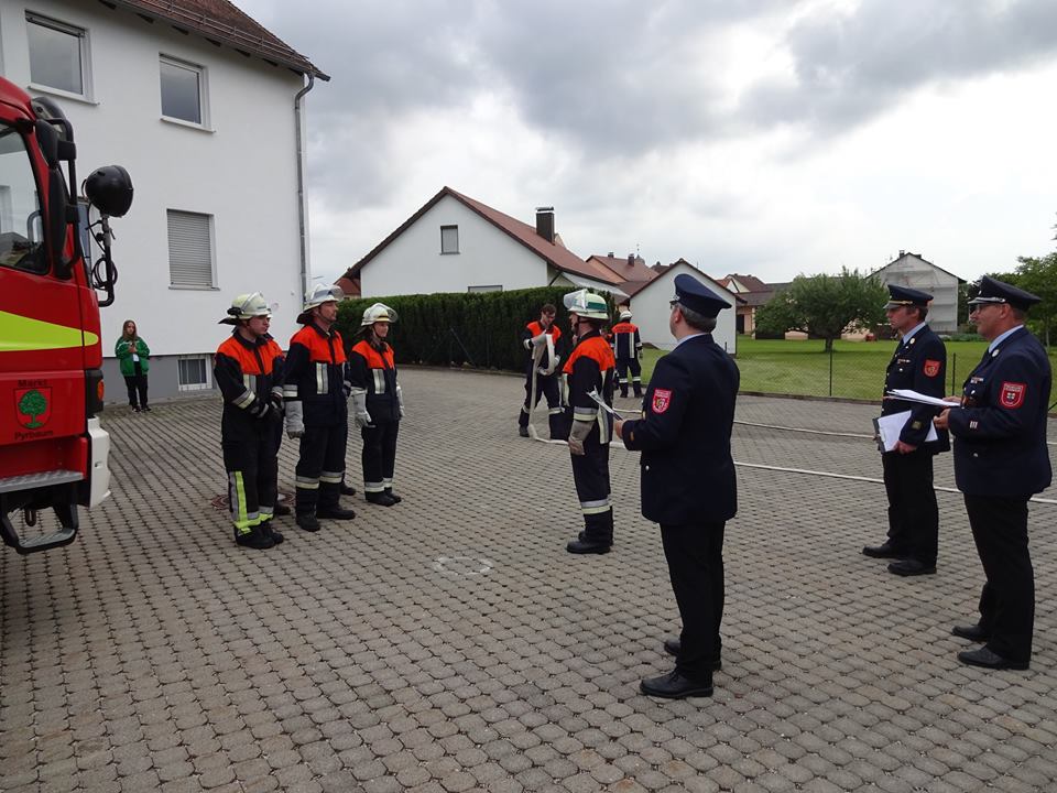 Kreisbrandinspektor Hans-Georg Mößler und Kreisbrandmeister Daniel Kaldonek dankten den Teilnehmern, dass sie Ihre Freizeit für die Vorbereitung der Leistungsprüfung geopfert haben. Die Glückwünsche und den Dank der Marktgemeinde Pyrbaum überbrachte der 1. Bürgermeister Guido Belzl.