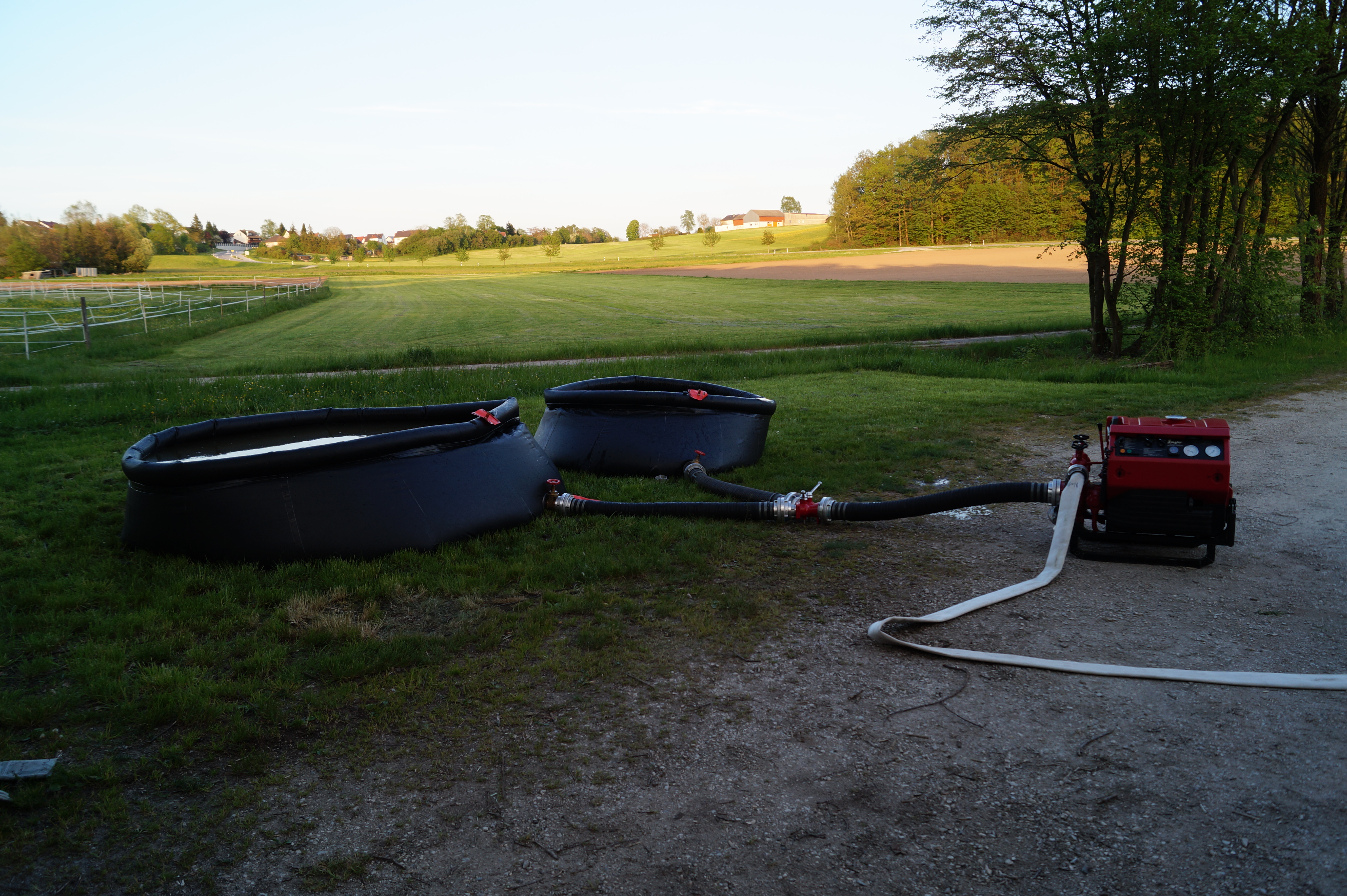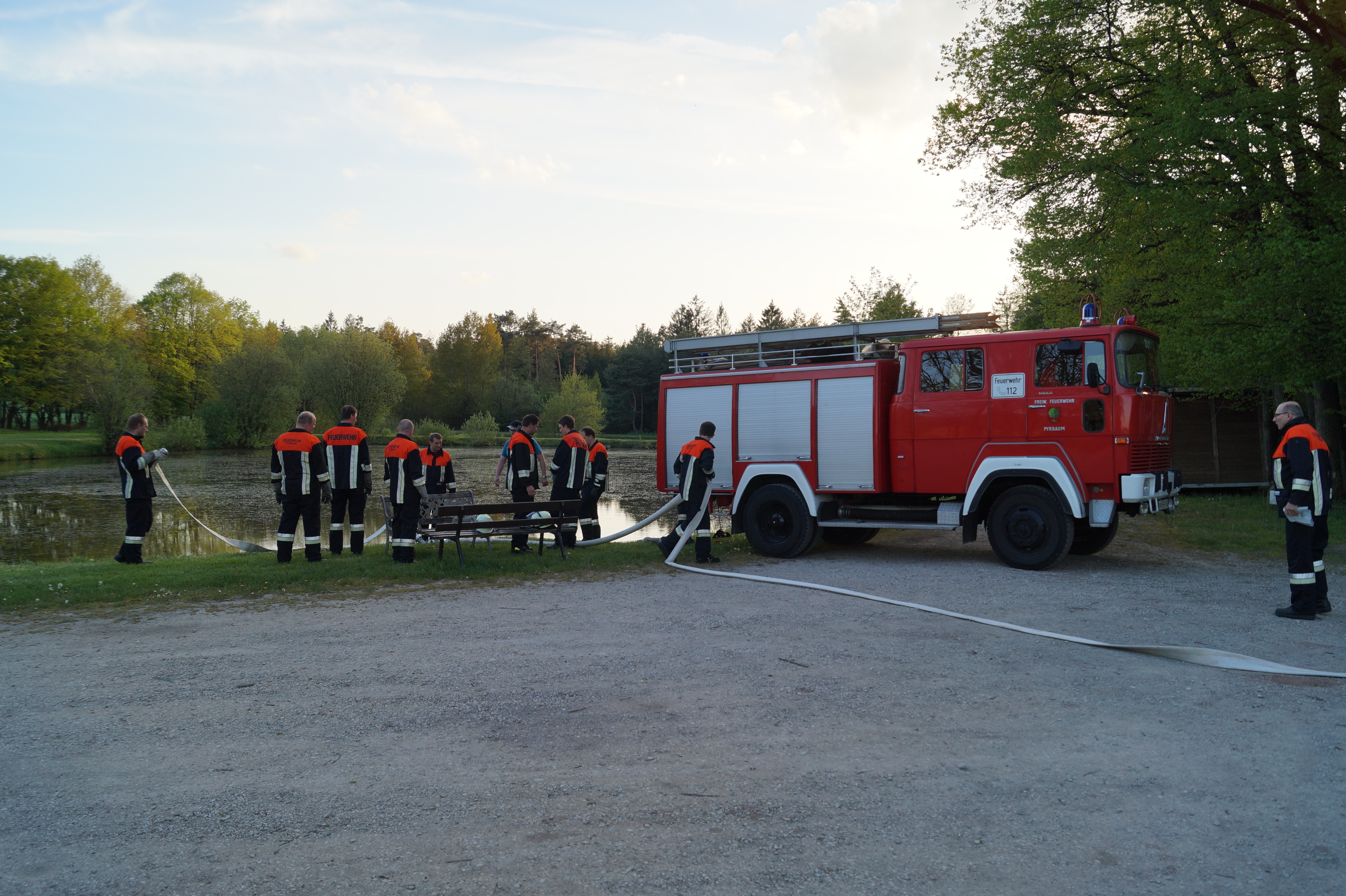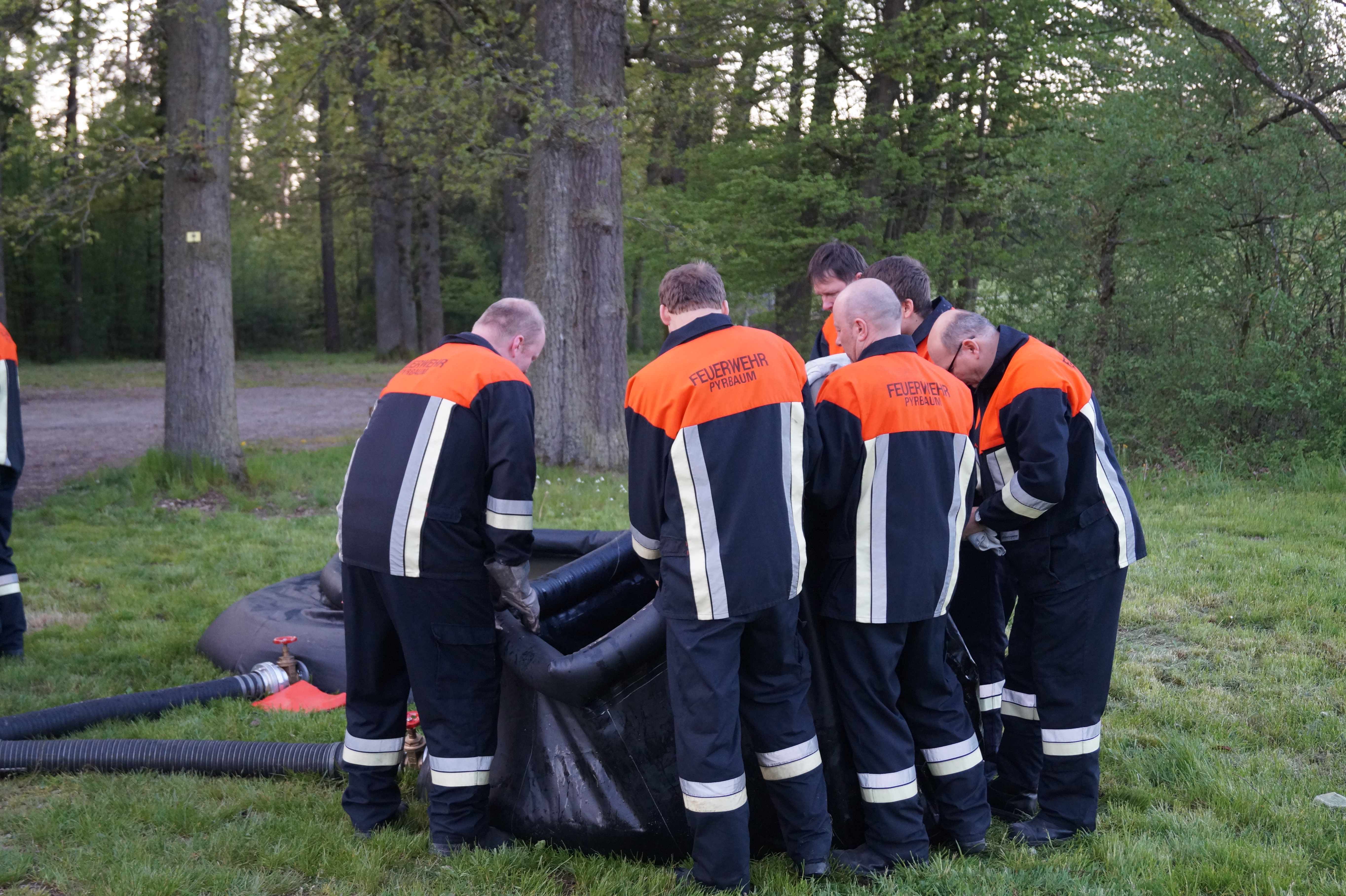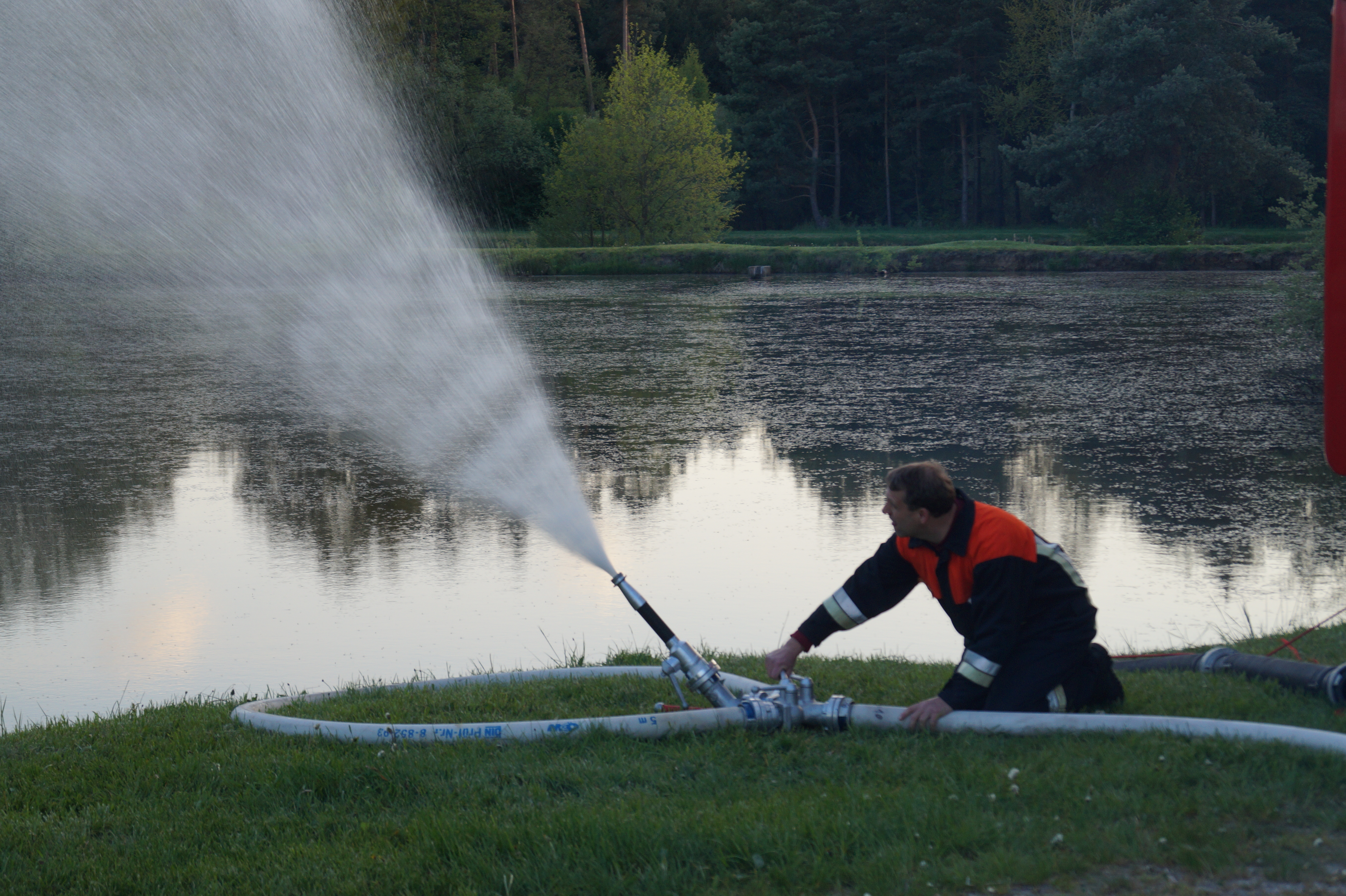 Am 09.05.2016 hatte der Zweite Zug der FF Pyrbaum ihre monatliche Übung. Mit MZF, LF8 und TLF16 ging es zum Fischerweiher, um dort den Aufbau einer Löschwasserversorgung mit zwei Faltbehälter und einer externen Pumpe zu üben. Anschließend wurden die Becken wieder geleert, indem der Aufbau eines Wasserwerfers für Notfälle wiederholt wurde.
