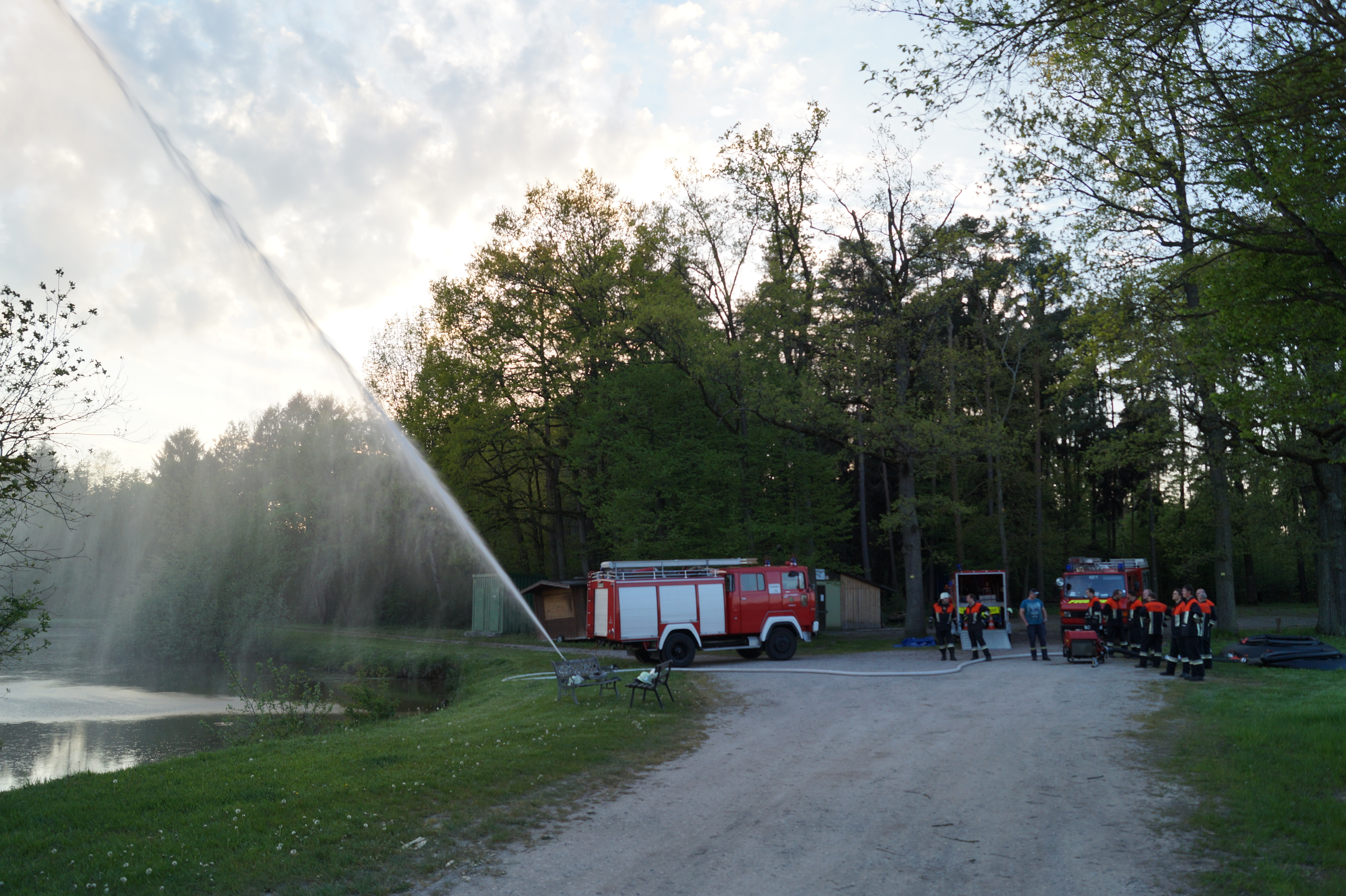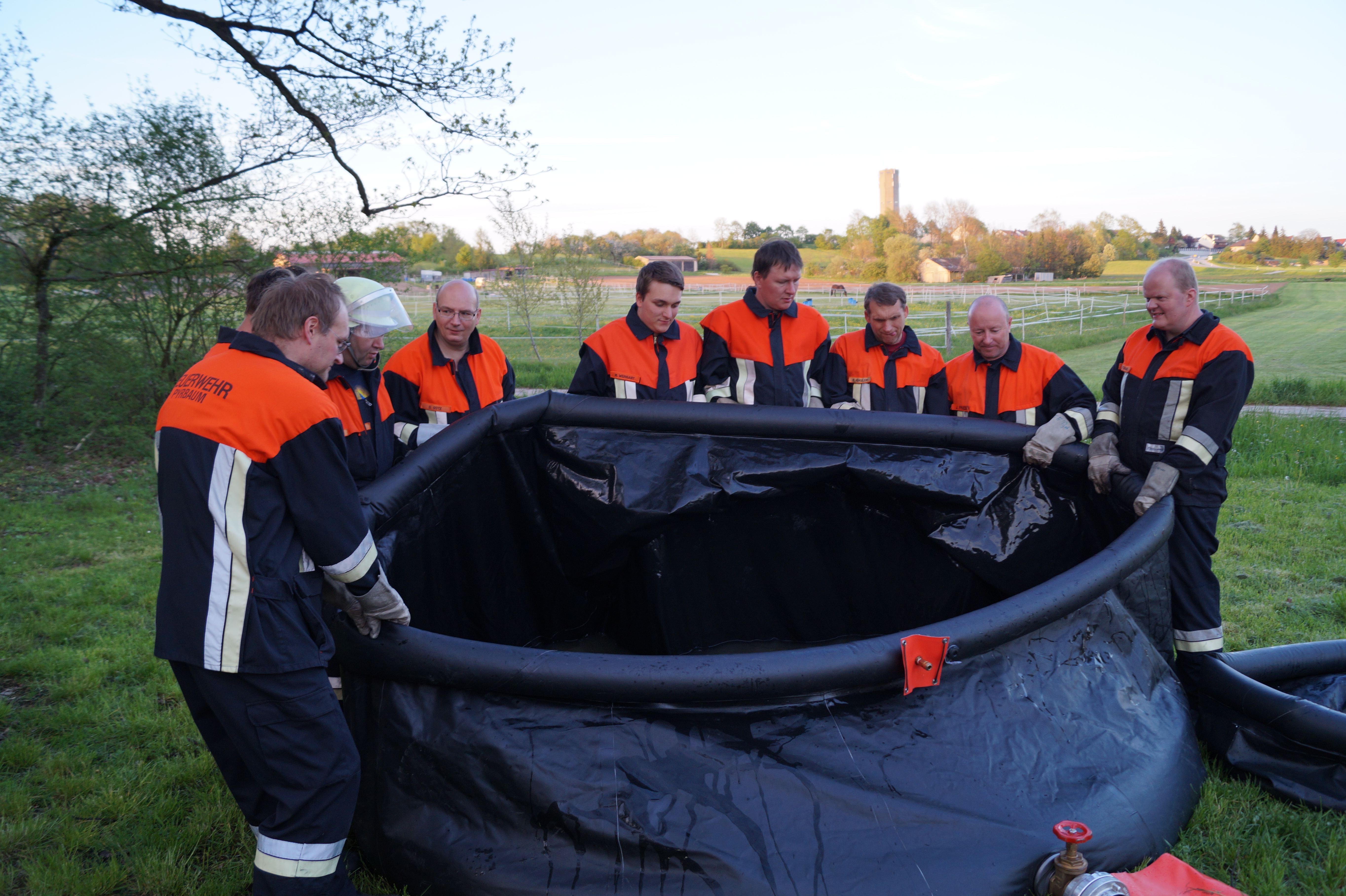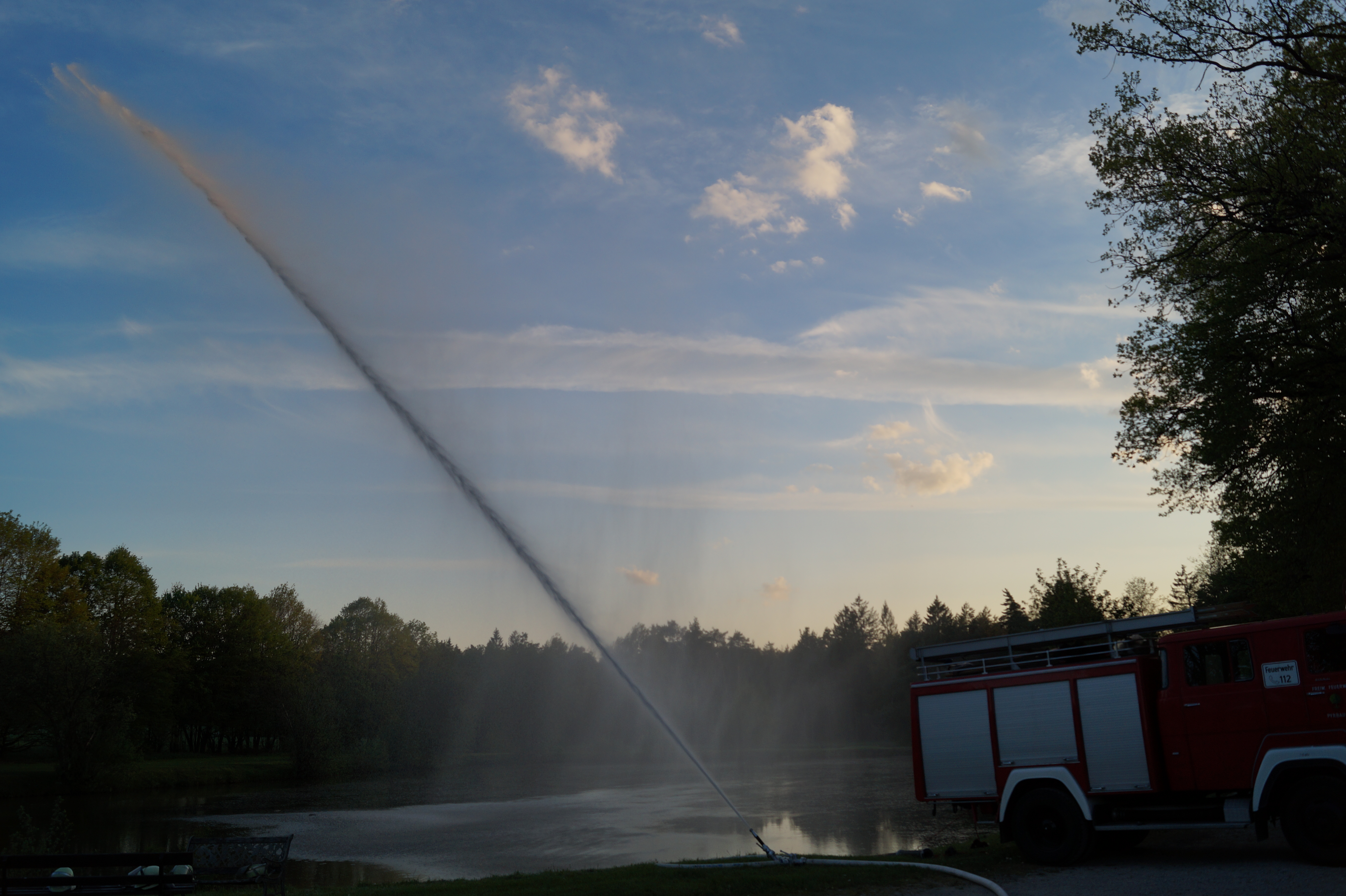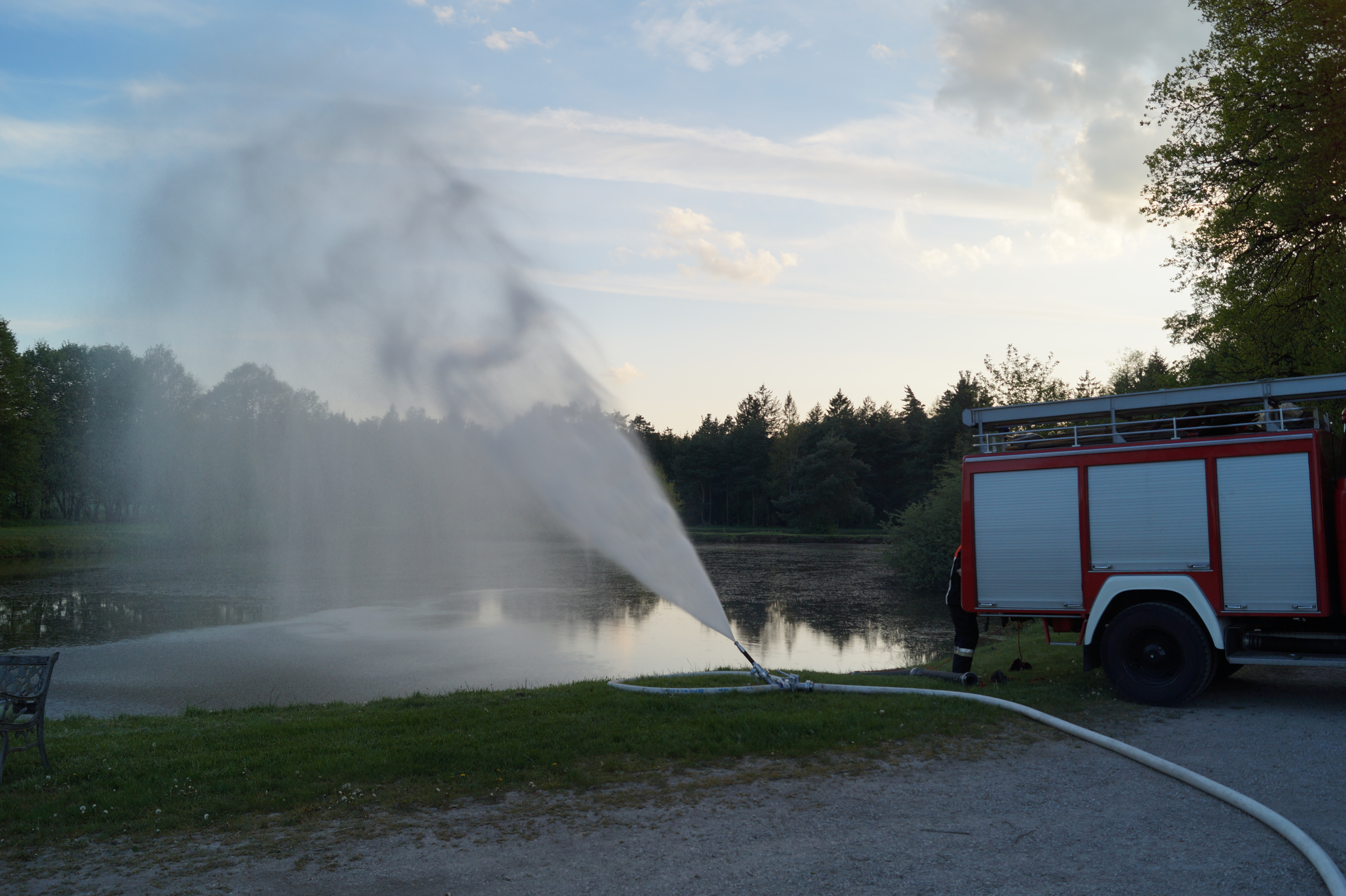 Am 09.05.2016 hatte der Zweite Zug der FF Pyrbaum ihre monatliche Übung. Mit MZF, LF8 und TLF16 ging es zum Fischerweiher, um dort den Aufbau einer Löschwasserversorgung mit zwei Faltbehälter und einer externen Pumpe zu üben. Anschließend wurden die Becken wieder geleert, indem der Aufbau eines Wasserwerfers für Notfälle wiederholt wurde.