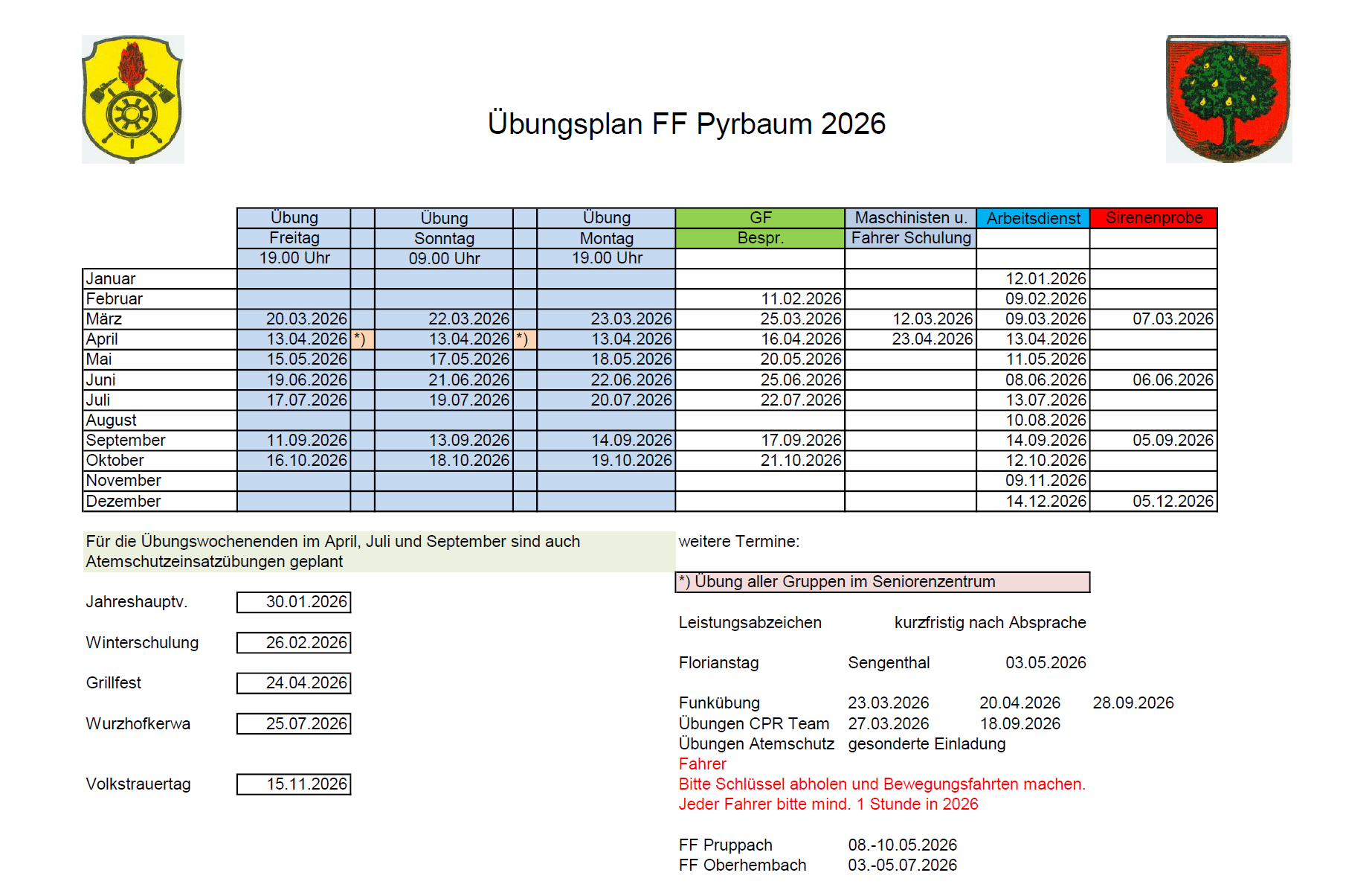 Hier finden Sie den Übungsplan 2026 und weitere Termine als PDF-Datei zum Herunterladen und Ausdrucken:
